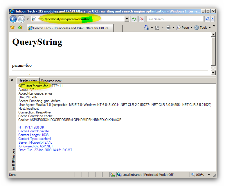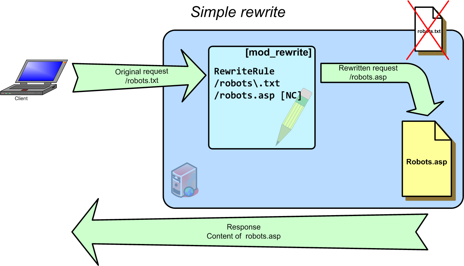 - If “robots.txt” is requested, initial URL is compared with “robot.txt”. Strings match, URL is rewritten to robot.asp.