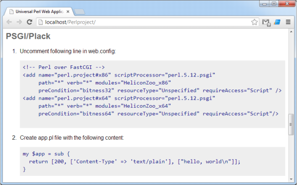 - Open project's home page and follow steps in "PSGI/Plack" section: