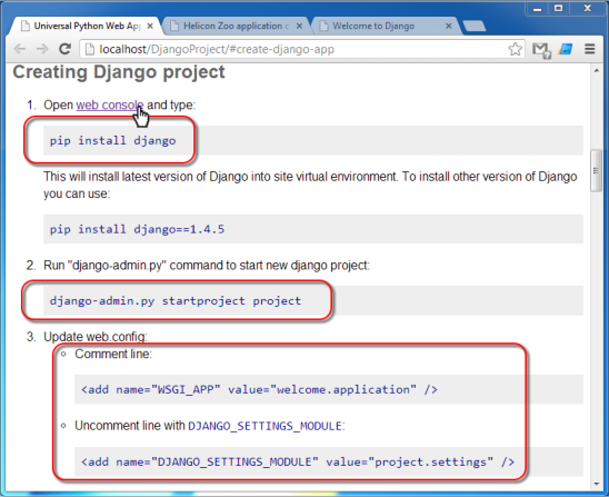 - Follow steps in "Creating Django project":